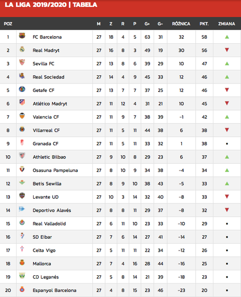 Laliga Tabela I Terminarz Ligi Hiszpanskiej Kiedy Mecze Pilka Nozna
